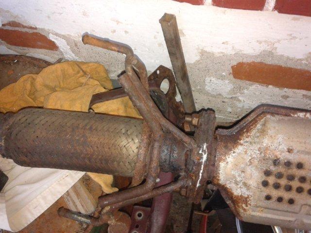 sorry, aber ich denke du bist am falschen ende ;) der reihenfolge der fotos nach und auch, wenn ich mir das restliche häufchen rost da anschaue, sieht es für mich so aus, als wärs das hitzeschutzblech überm endtopf. und da hilft dann auch der fächerkrümmer nix ;)