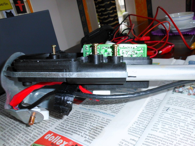 Ich habe also die Antenne ausgebaut (was man auf jeden Fall machen sollte um sie gründlich zuu reinigen) und den Stab nach unten rausgezogen. Hierzu muss man dann erstmal die Führungshülse (rechts) abschrauben und aus dem Antennengehäuse herausziehen. Da am anderen Ende der Führungshülse das Teil befestigt ist, was an die Karosserieform angepasst ist und sich nicht drehen lässt, sollte man die Lage der Hülse vor dem Ausbau tunlichst mit einem Stift markieren. Dabei geht es nicht darum, wie tief die Hülse im Gehäuse steckt, sondern wie sie gedreht ist. http://www.xedos-community.de/attach...1&d=1357853781 http://www.xedos-community.de/attach...1&d=1357853919 Der Antennenstab lässt sich dann nach unten raushziehen: http://www.xedos-community.de/attach...1&d=1357854137 http://www.xedos-community.de/attach...1&d=1357853980 Dann halt alles zerlegen, dabei das kleine Metallplättchen über der Motorachse nicht vergessen und sich merken, wie rum das Ding eingebaut war und reinigen. Beim wiederzusammenbau muss dieser Plastik "Zahnriemen" ja wieder eingefädelt werden. Dazu muss man Spannung an den Stecker anlegen, damit der Stab durch den Motor ins Gehäuse gezogen wird. Ich habe mir das leider nicht genau gemerkt und auch den Stecker nicht fotografiert, aber ich meine der hat 3 Anschlüsse, einmal Masse, einmal Plus und einmal Steuerleitung. Masse und Plus schließt man an und wenn man Spannung an die Steuerleitung anlegt, fährt der Stab aus (entspricht einschalten des Radios). Nimmt man die Spannung wieder weg, fährt der Stab wieder ein. Beides jedesmahl komplett. Da das beim Zusammenbau ziemlich ungünstig ist, sollte man besser den Plus Anschluss tasten, damit man das einfahren des Stabes zwischendurch anhalten und besser kontrollieren kann. Das ist sicher nicht optimal beschrieben darf gerne noch von dem einen oder anderen ergänzt oder korrigiert werden. Gruß Jürgen |