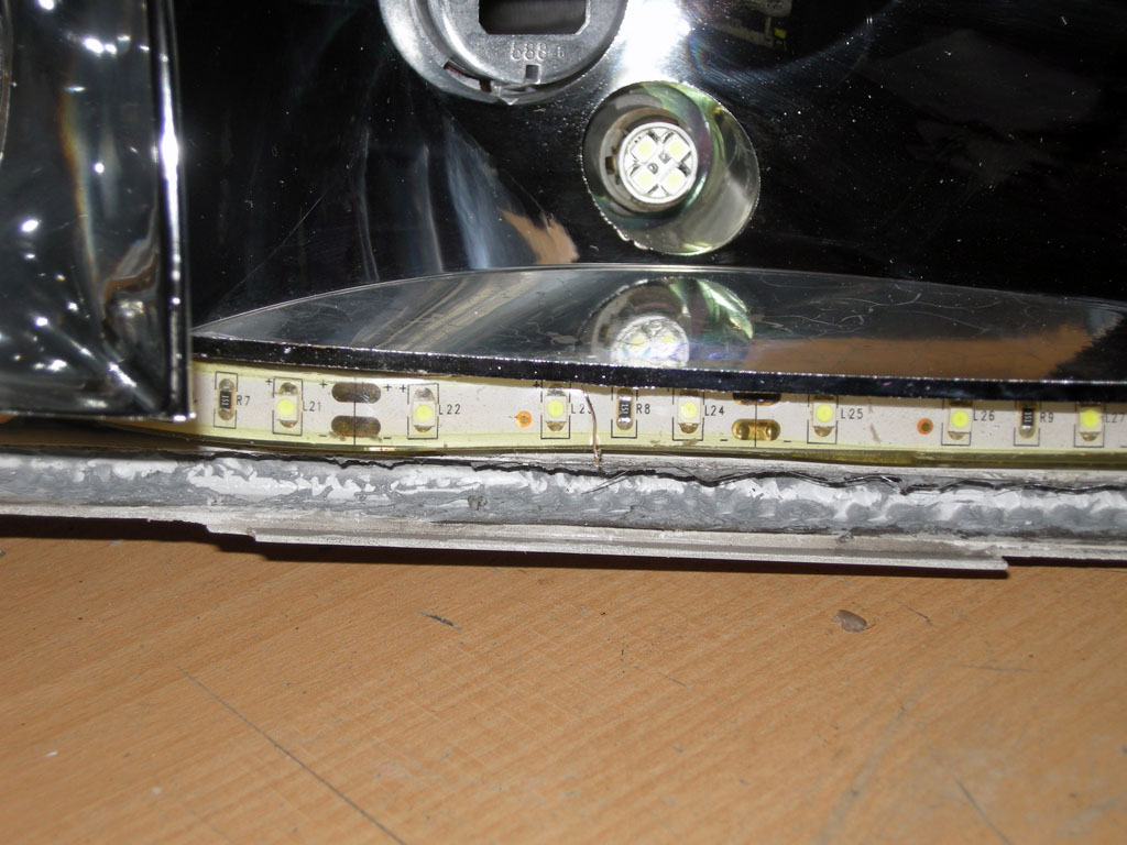 Da ich die SW schon geöffnet hatte, habe ich mir nicht die Gelegenheit nehmen lassen, eine LED-Tagfahrlich Leiste einzubauen.