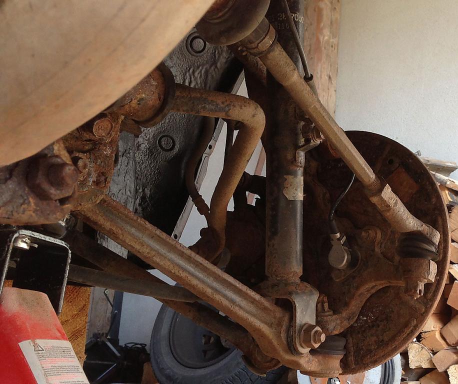 Aber zum wesentlichen. Ich bin gerade dabei mit Drahtbürste, Schleifpapier, Hammer, Meißel usw. den Rost zu entfernen. Alles was in den Radkästen ist, beziehungsweise dort zugänglich ist, habe ich schon gesäubert.
