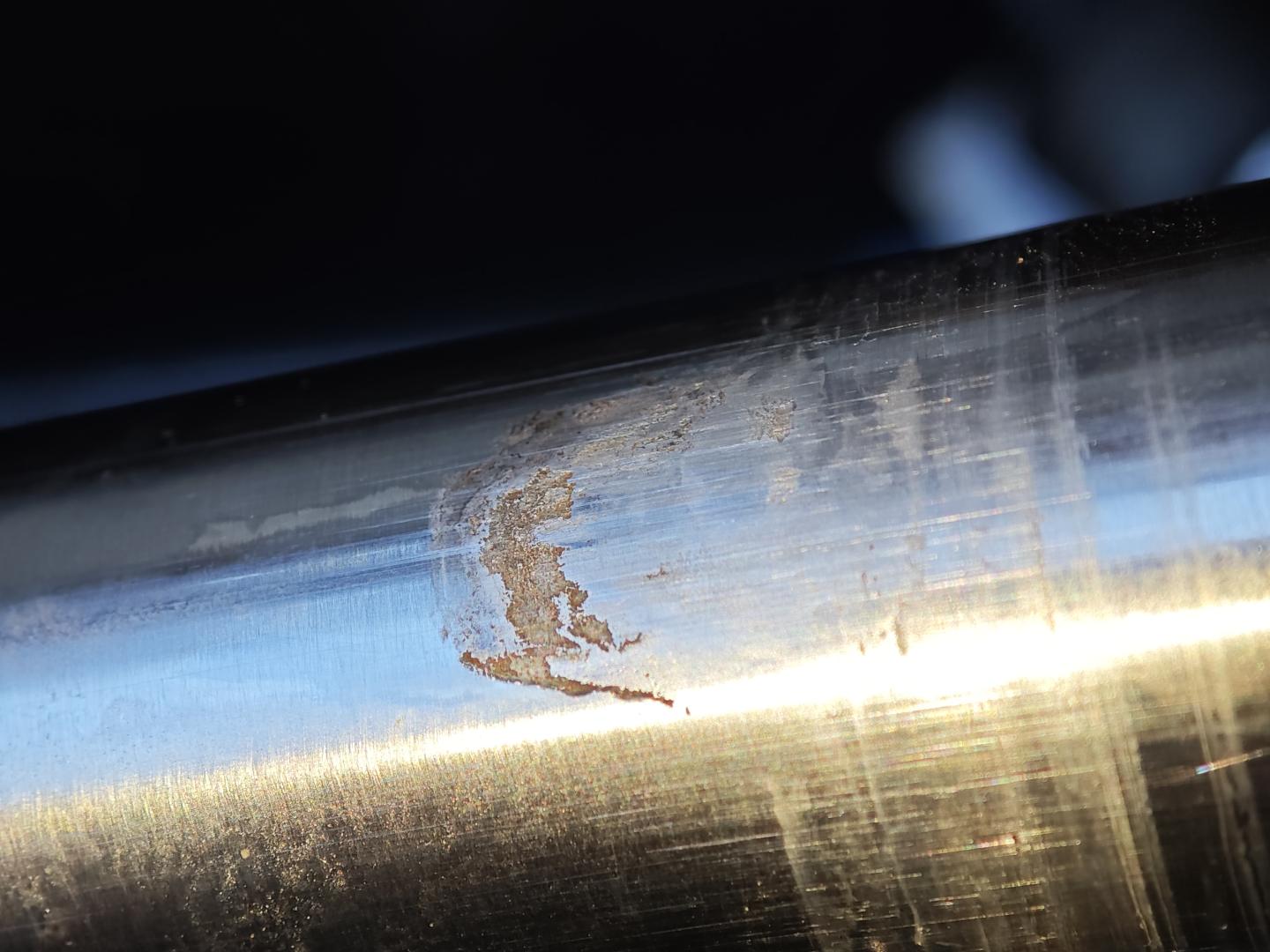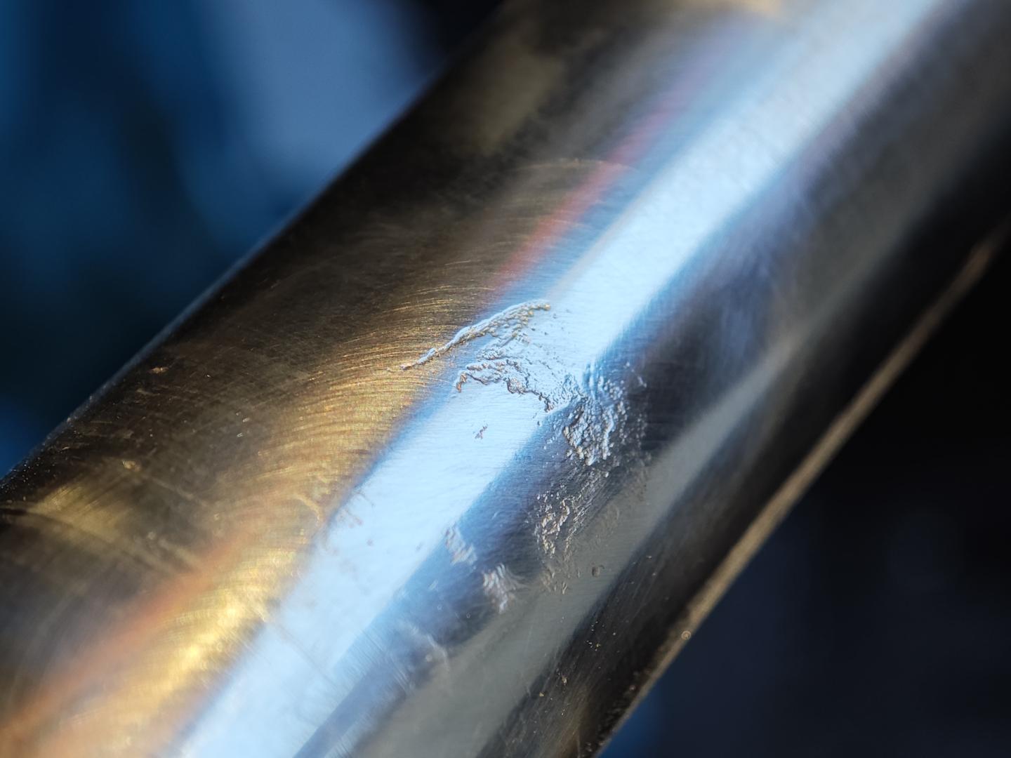 Hier sieht man deutlich was eine defekte Lenkmanchette als Folgeschaden verursachen kann. Duch eindringenden Schmutz und Feuchtigkeit hat die Zahnstange an einer Stelle angefangen zu rosten. Diese Stelle wird aufgeschweißt, plangeschliffen und poliert. Somit sollte die neue Dichtung wieder abdichten. Alles in Handarbeit