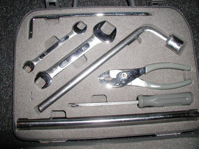 Auf jeden Fall ist das hier das Werkzeug, der Koffer von vorn und hinten und der vorgesehene Platz dafür. =o)