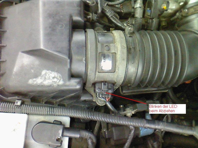 Wenn bei eingeschalteter Zündung der Stecker des LMM getrennt wird blinkt die LED im Rhytmus immer mit einem ca 2 sec dauernden Signal.