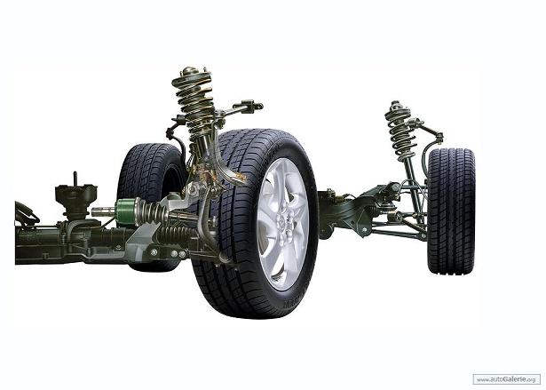 Federn, Stoßdämpfer, Bremsen, Räder, Reifen