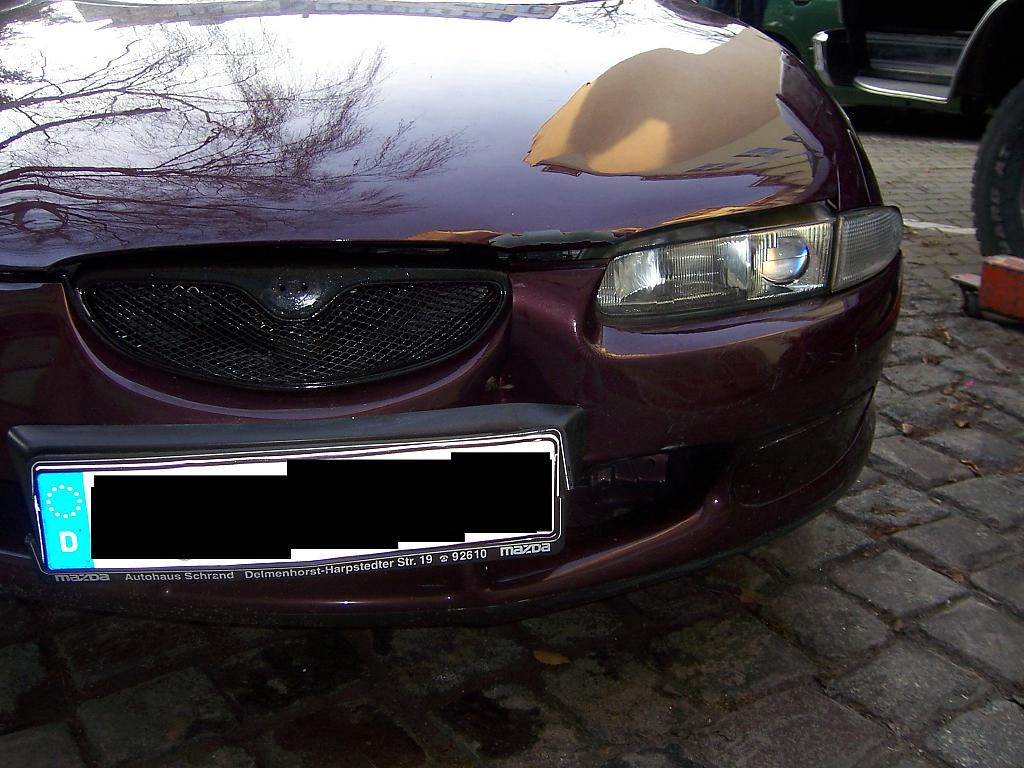 eine Blondine auf Nissan Micra ))) is aus nem Parklplatz rausgefahren, ne Oma vor mir auf Mazda 626 hat ne Vollbremsung gemacht ,na da bin ich ihr da "Reingerutscht"- ich bin zum stehen gekommen, aber da die Straße nass war (