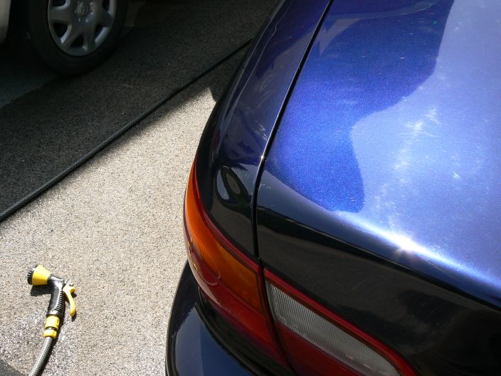 Kotflügel wurde voriges Jahr bereits semi-professionell eingeschweisst (dafür könnt ich den Vorbesitzer erwürgen *grml* -> deshalb ist auf der rechten C-Säule auch der Lack eingefallen) ... allerdings ist der Flügel schon wieder durch und wenn, dann leg ich Kohle zusammen und mach nächstes Jahr eine Verjüngungskur -> mit Komplett-Lackierung. Die weißen Schatten am Dach und auf der Heckklappe (sieht so aus, als würde die Grundierung durch den Lack scheinen) kommt mir nicht ganz koscher vor.