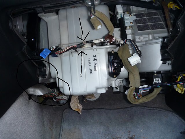 Der Lüfter selbst sitzt in Richtung Beifahrertür, einfach kopfüber mit drei Schrauben montiert, und es geht ein gebogener Schlauch (knapp 1cm Durchmesser) von dort weg, sowie ein Stecker. Schlauch und Stecker abziehen, dann die Schrauben lösen und schon hast du den Motor draußen. Dann mal säubern, einbauen und schauen ob es wieder ruhig ist