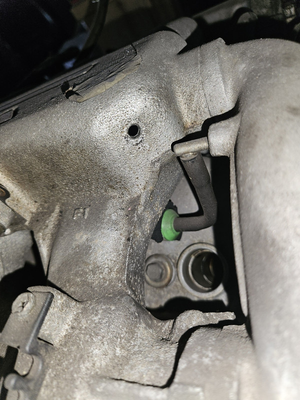Bei meinem silbergrauen X6 war in der Ansaugbrücke auch ein Loch bei der Autogas-Umrüstung hinein gebohrt worden, allerdings vorne rechts, nicht hinten links. Dort war bei mir mal ein Messing-Stück eingesetzt, über das der Motor das Flash-Lube ("Ventilschutzadditiv") angesaugt hat. Flash-Lube ist beim KF/KL bekanntlich total überflüssig, ich habe das Loch dann mit Flüssigmetall verschlossen.