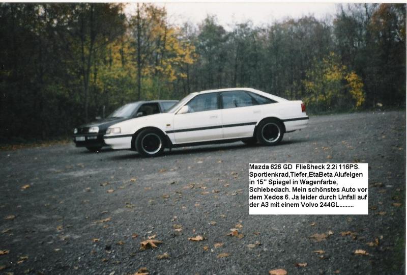 den 626 GC hatte ich auch, Fließheck, 101 Vergaser-PS mit ungeregeltem HJS-Kat, dazu Body-Kit, Nebler, Alus und Kriegsbemalung (Dekor). Dann noch das 626 Cpupe 2.2 L 12-Ventiler mit 116 PS, nur in rot statt schwarz, letzte Serie. Eines der besten Autos, das ich je hatte. Da ging rein gar nix kaputt. Nicht mal der Auspuff in über 150000 km. Ich Depp hab ihn damals nach nur 6 Jahren verkauft. Sehr schade, dass ich von meinen Autos nie Fotos gemacht habe, das hab ich schon mehrfach bereut.