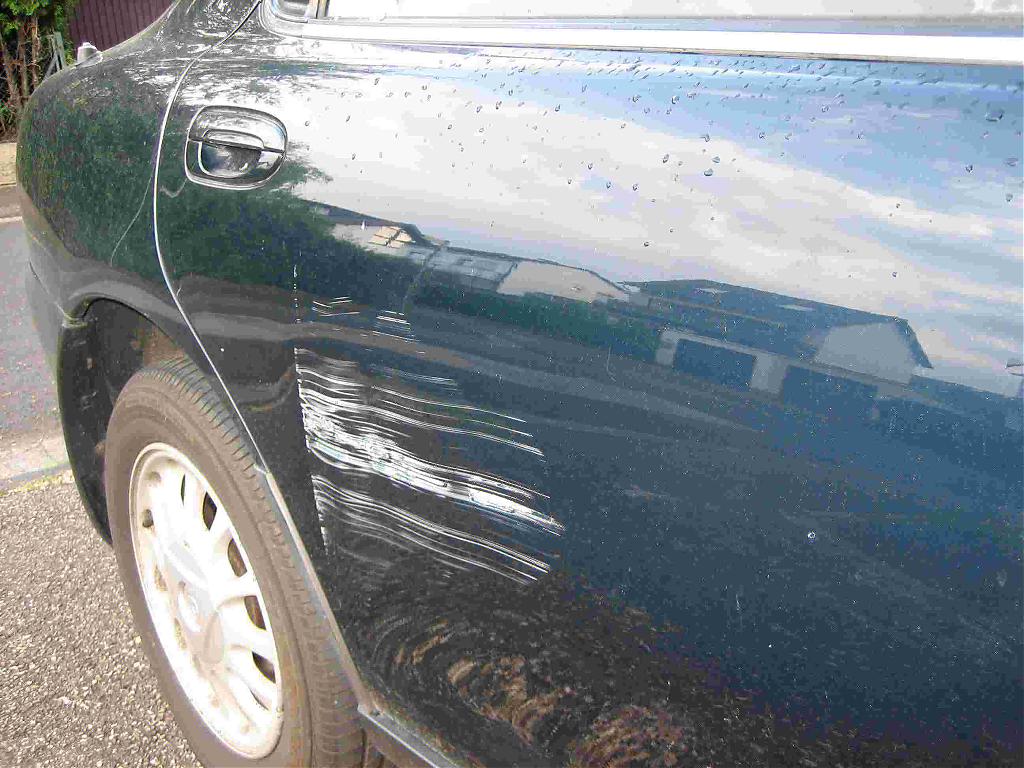 bisher hat er sich tapfer gehalten, doch nun habe ich an meiner hinteren rechten Tür einen echt üblen Lackschaden. Der Xedos ist fies an einem Pfeiler einer Tiefgarage hängengeblieben - und jetzt sieht er so aus !