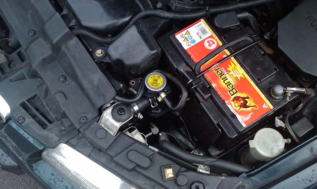Es ist auch ein kurioser Kühler verbaut und somit befinden sich gleich 2 von dem mysteriös Gelbbedruckten Schraubverschlüssen im Motorraum.