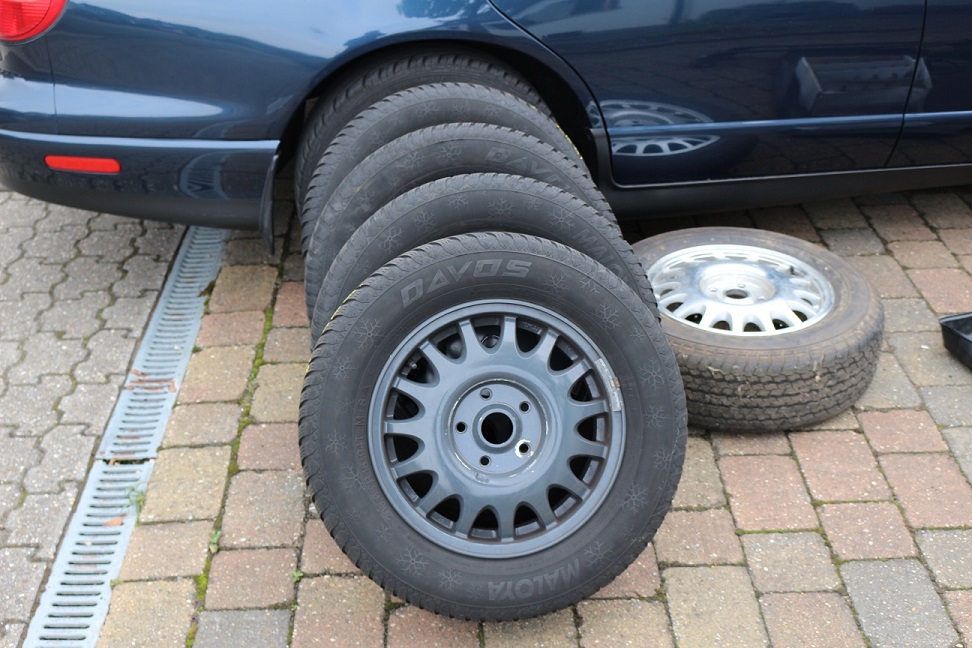 # Winterreifen 195/70R15auf normalen Alus lackiert