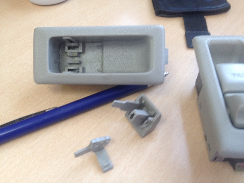 So auch bei mir passiert: ich war gerade dabei, in die Waschstraße zu fahren, wollte nur kurz kontrollieren, dass das Schiebedach auch wirklich korrekt geschlossen ist und schon hatte ich den Schalter zerbröselt in seinen Einzelteilen in der Hand. Also die meisten Einzelteile zumindest, einige Plastikstückchen liegen jetzt irgendwo unter den Sitzen und Sitzschienen.