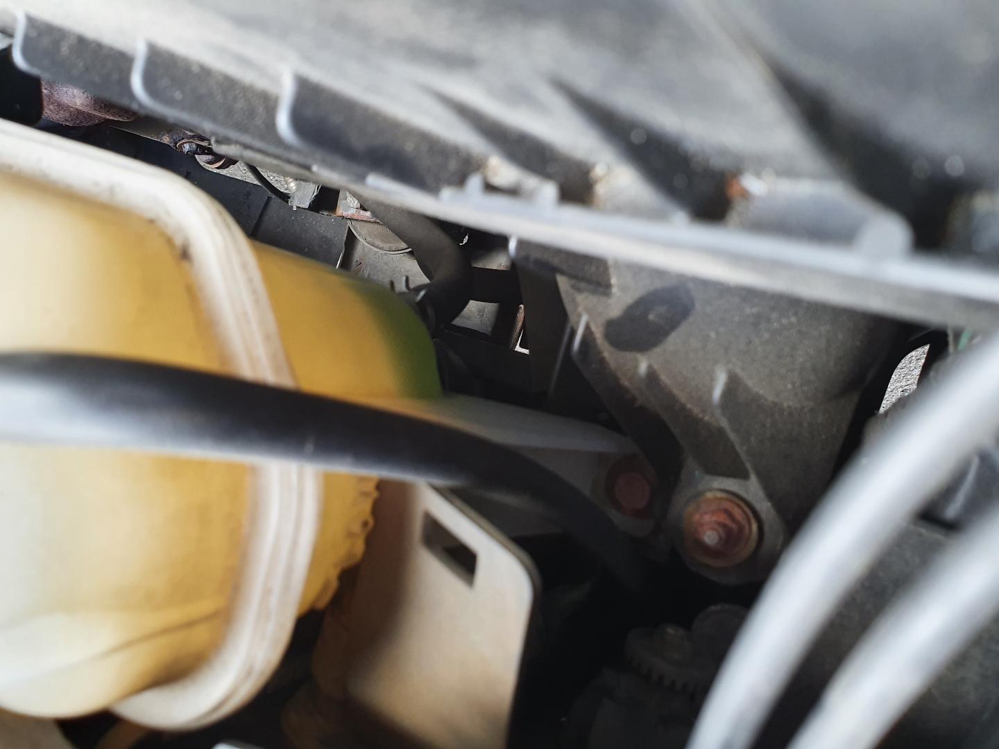 Ohje, ich muss checken, ob das wo ich gucken war der Ausgleichsbehälter ist, längliche Wanne vorn rechts? Da war es zumindest sauber, und auf den ersten Blick voll. Reiche ich nach,v jetzt steht er leicht abschüssig.