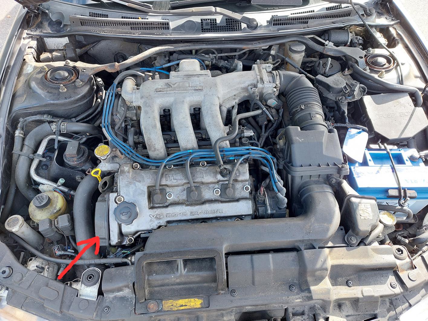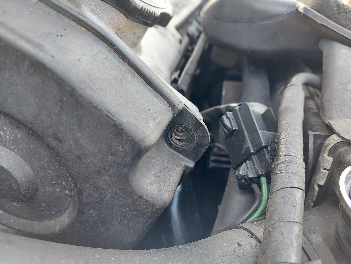 Im Motorraum ist seit ein paar Jahren die Schraube einer Plastik-Abdeckung abgebrochen. Das passierte früher mal in einer Werkstatt glaube ich. Man sagte mir das sei nicht schlimm. Seitdem ist seit ein paar Jahren ein offener Spalt bei der Abdeckung, etwa 4-5 mm.
