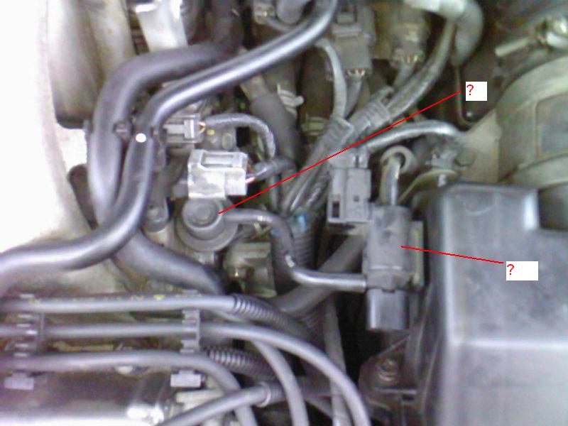 auf Bild 2 heißt Du beide Komponeten gefunden, auf die es ankommt: das runde Ding ist der Benzindruckregler, das eckige Teil mit dem Stecker dran der Magnetschalter, mit dem das Motorsteuergerät den Unterdruck für den Regler kontrolliert.