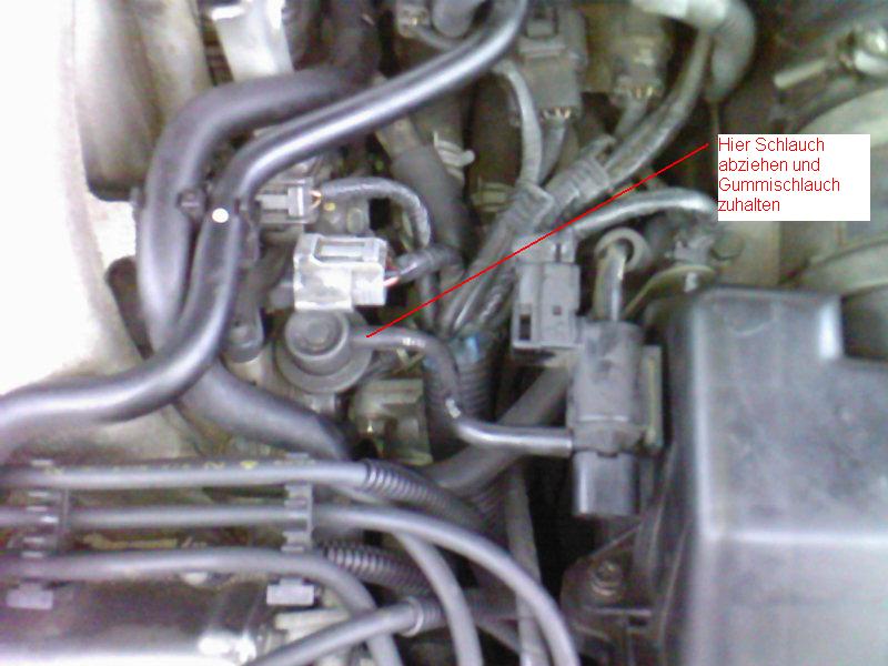 Auf einem Parkplatz habe ich den Schlauch zwischen dem Benzindruckregler und dem Magnetventil während der Motor lief abgenommen.