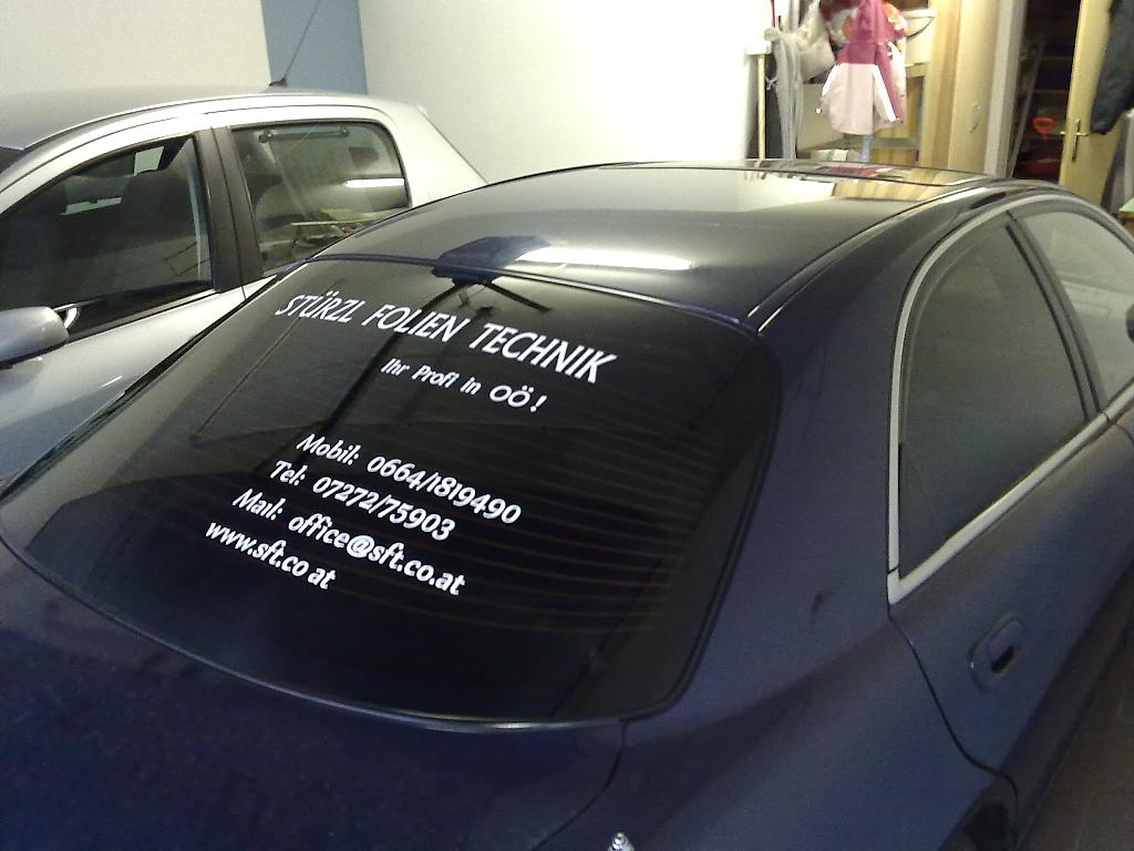 Wer sein Auto aber als Werbeträger benutzt, hat natürlich noch den Vorteil, dass der Aufkleber auf der dunklen Heckscheibe besser lesbar ist.