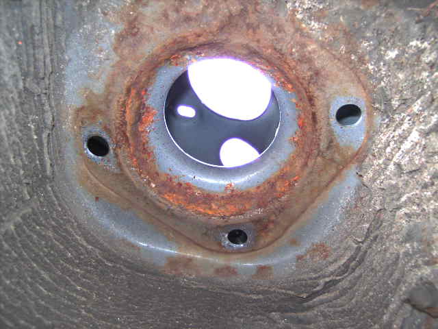 in der Mitte die beiden Gummidichtungen des unteren Federbeintellers und des oberen Verdrehtellers