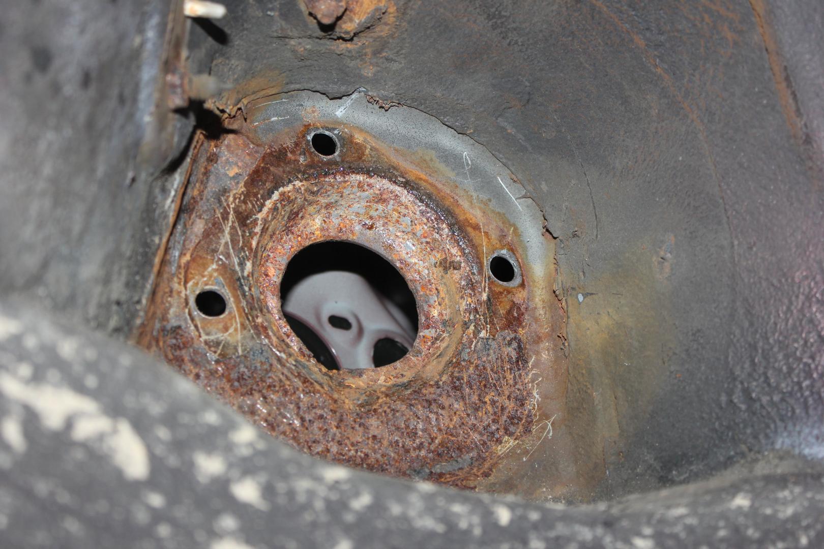 Nach aufreibender Teilesuche beginnt nun langsam der erwartete Einbau der Hinterachse. Die Achsschenkel sind aufgearbeitet (sind schon wieder staubig). Neue ABS-Sensoren und Bremsschläuche verstehen sich von selbst. Die Schutzbleche sind, wie fast alles, vom 626 GE. Aber zunächst werden die Radläufe fertig geschweißt. Links ist fertig und grob verspachtelt, dabei wurde auch gleich ein kleiner Parkschaden beseitigt Rechts macht noch etwas arbeit