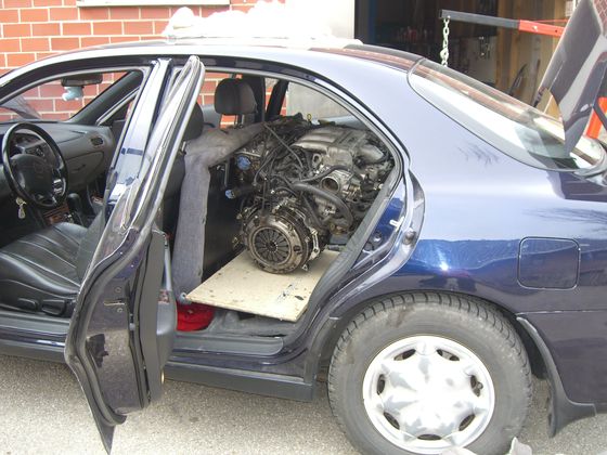 Ich hätte nicht geglaubt das wir den Motor überhaupt reinbekommen. Mit aushängen des Türanschlags und demontieren aller Plastikteile und Polster rund um die Türe ging er gerade so rein. Ein par Macken waren da wohl nicht zu vermeiden. Aber immerhin kannst du behaupten das du schon einen Xedos 12 Zylinder gefahren bist