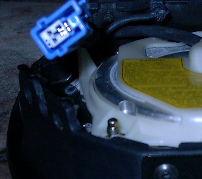 Das ist aber komisch. Ich hatte den Airbag ja schon x-fach raus und habe schon verschiedene Varianten der Originalairbags bei mir drin (Original, Serie 2 ohne Logo, Serie 2 mit Kunststoff-Logo, jetzt Serie 2 / X9 mit Chrom-Logo) und ich habe noch zwei Airbags in der Garage liegen. In alle Airbags führen lediglich zwei Adern.