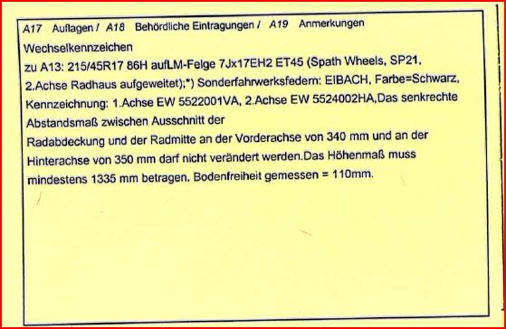 Du musst aber ein Gesamtgutachten erstellen, wenn du nicht das Glück hast, dass deine Federn mit genau deiner Reifendimension getestet wurden.