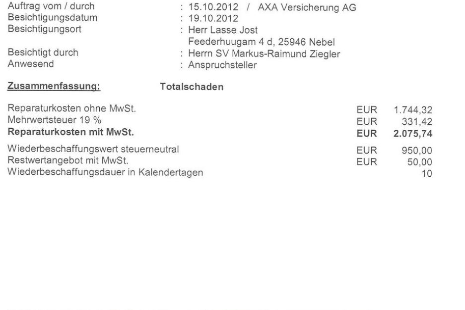 beim gutachten wird zwar beschrieben, wie der wiederbeschaffungswert ermittelt wurde ("privat-zu-privat"), aber nicht, wie hoch er ist. wie kommst du also auf die €980?