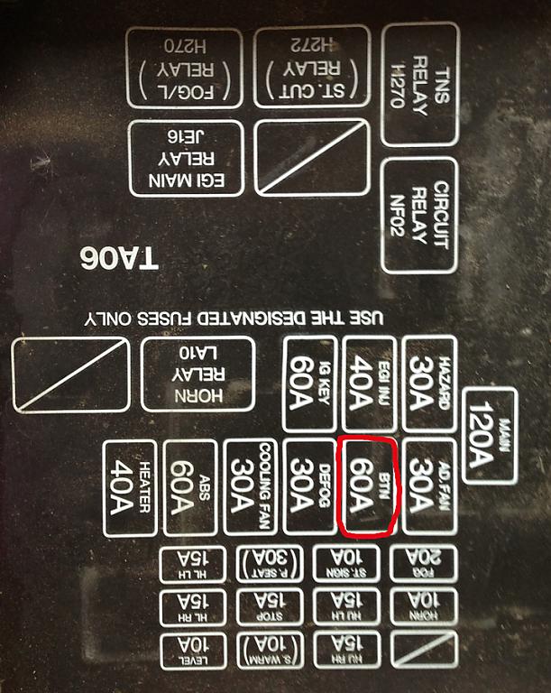 Den Deckel vom Sicherungskasten im Motorraum habe ich angeschaut ubd auch Fotografiert. Da steht BTN 60A. Was heisst das?