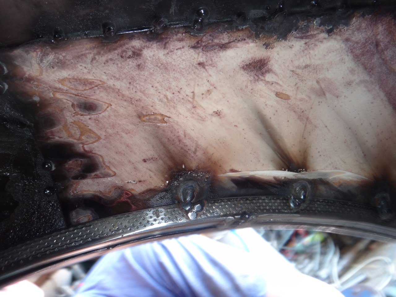 bilder anbei - einmal von außen, einmal von innen. man beachte, dass hier nur der "rand" aus der fahrradfelge besteht - die seitenwand sollte vorher durch blech schön modelliert worden sein.