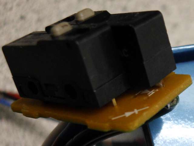 Wenn man das anschließend testen will, dann kann man ein Labornetzgerät im Stecker an die rote und blaue (nicht schwarze) Leitung anklemmen. Ich hab das aber einfach ausprobiert, mit der schwarzen gab's einen Kurzschluss, wenn man den Schalter betätigt hat. Also immer schön vorher die Strombegrenzung einschalten (am besten < 5 mA), damit nix schief geht.