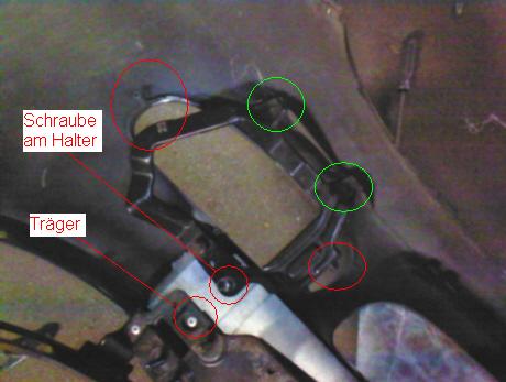 Ich habe die Befestigungspunkte am Halter/Träger rot umrandet, welche NICHT passen. Die passenden Aufnahmen sind grün umrandet.
