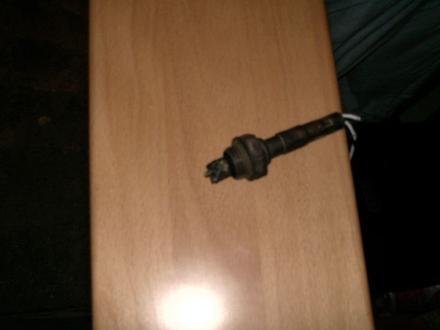 Also Lambdasonde herausgeschraubt. Wie das Bild zeigt, war das nur noch ein Rudiment von Sonde. Von den Fehlzündungen mit dem kaputten Verteiler regelrecht zerschossen.