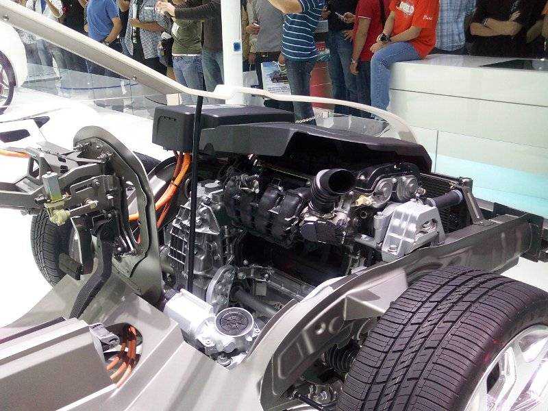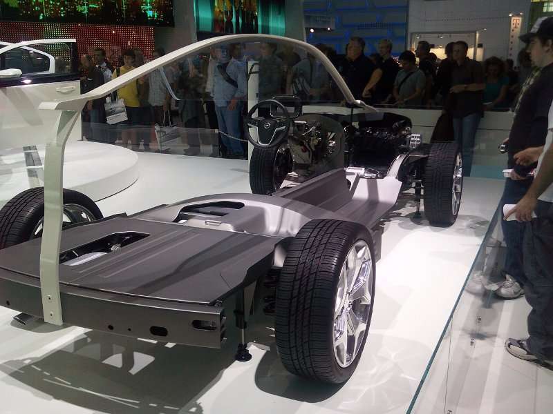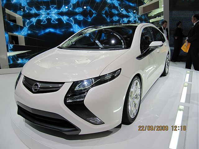 Nachdem ich mich auf dem Stand von Opel in Halle 8 durch die Menschenmassen rund um die neuen Astras und die Menschenmessen rund um den Insignia gekämpft hatte, stand ich direkt vor der erhöhten und kaum zu übersehenden Plattform mit dem sich drehenden Ampera und seinem Plattform-Gerippe daneben.
